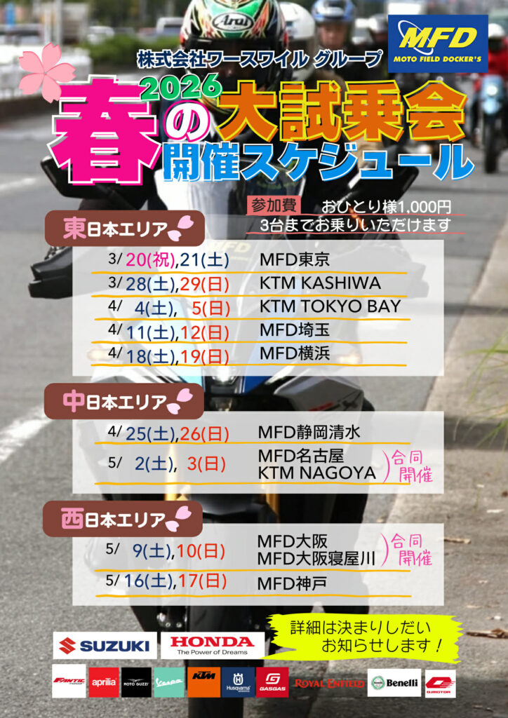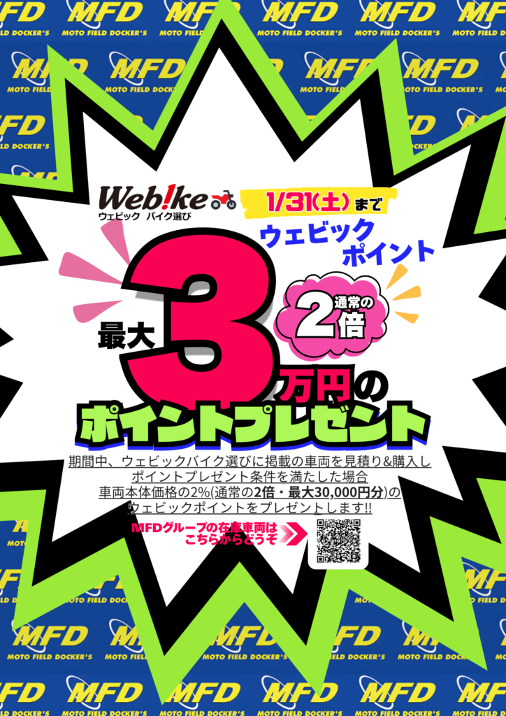 MFD大阪店は大型店舗を生かし、原付から大型バイクまで常時200台以上在庫しています。特にSSに力を入れており、SS好きの方にはご満足していただける豊富な在庫車両をご用意しています。また、ご購入いただいたお客様の嗜好や車両情報はスタッフ全員で共有し把握していますので、いつでも誰でもご対応できるよう勤めています。お客様と長いお付き合いをして、バイクライフをエンジョイできるお手伝いができればと思っています。ぜひ当店に遊びに来てください。